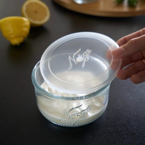 Jeg har en igjen av denne skålen med blått lokk som er lekker til servering, eller bruk den til kjøleskapsgrøt etc. Størrelse: 275ml. Kjøper betaler porto.