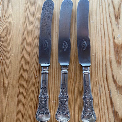 Ca 100 gammelt og i meget god stand, uten graveringer eller slitasje på blad etc.