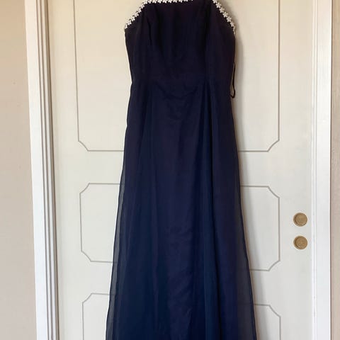 Marineblå blonder fest selskap pyntet eksklusiv luksus midikjole sommerkjole selskapskjole kjole behagelig causual comfy komfortabel kvalitet elegant stilfull rimelig mote merkeklær bærekraftig gjenbruk secondhand