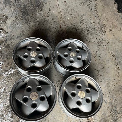Strøkne Landmark felger fra Landrover butikken. Sommerdekkene som står på er slitte.