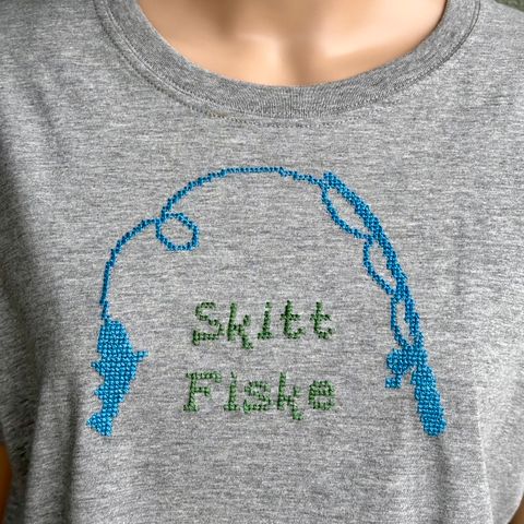 Svart basic t-shirt i 100% økologisk bomull,håndbrodert av meg. Unisex modell som er merket str.M; dette tilsvarer str.medium til herre og large til dame. Rett modell med god lengde. God bomullskvalitet og min egen erfaring er at disse t- shirtene fra You holder seg veldig godt selv etter mange runder i både vaskemaskin og tørketrommel( jeg anbefaler å unngå tørketrommel av hensyn til broderiet) 😊 Jeg bruker brodergarn fra Dmc ,hvilket er et fargeekte garn i 100% bomull som kan vaskes inntil 40 /-60 grader. Se gjerne de andre annonsene mine med flere håndbroderte tekstiler,vesker,capser,håndlagede veggtepper mm😊 Send mld dersom du ønsker flere ting sendt i samme pakke😊