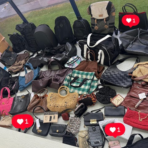 Pen brukt DKNY skinn rosa farge fin veske mange lommer,24x15 og lenken120cm.