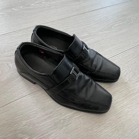 Klassisk dress-sko i syntetmateriale, med spenne på siden.
