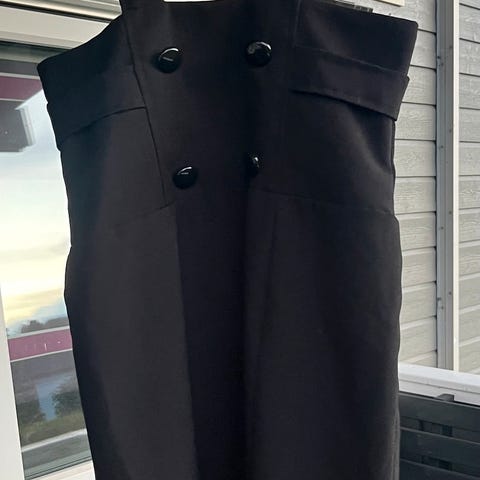 Kjole med kult design str M, stilig med feks en skjorte under. Stoppene kan stilles, strikk i livet og belte kan strammes inn/ut.