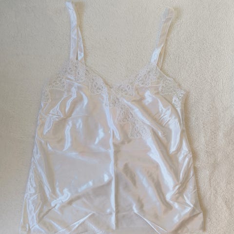 Nydelig gammelrosa "silke" singlet med blondekant
