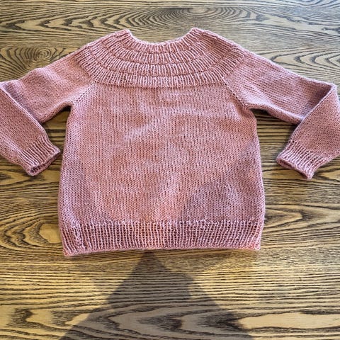 Hjemme strikket gensere til jenter blanding silkegarn, myke og behagelig . Str. 3 år, 4-5 år.