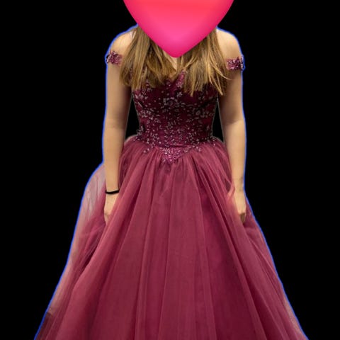 Fantastisk fin ballkjole med underskjørt og bollero leies ut. Fargen kommer ikke helt frem på bildene, men den er rosa/fersken med flotte steiner og detaljer. Burde absolutt sees😊