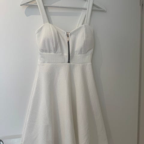 Vakker, lett og kritthvit sommerkjole. Flatterende og med nydelig mønster. Kjøpt i Marbella i fjor.