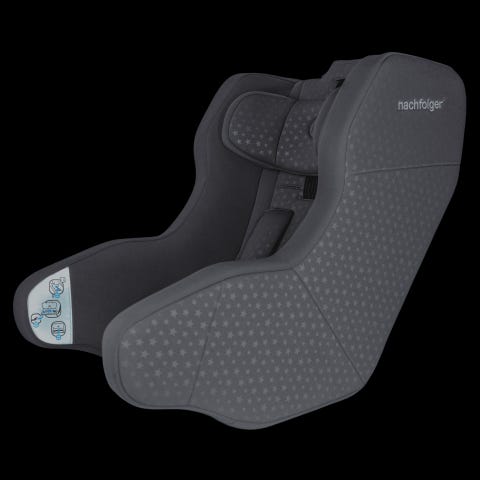 Nachfolger City er godkjent for barn opp til ca 5 år/105cm. Bilstolen kan brukes i alle bilens seter - samt på tog og på fly. Passer også i små biler, bilkollektiv, buss og taxi. Festes ved hjelp av bilens setebelte og toptether. Ved bruk i bil må toptether benyttes. I tog, buss og fly trenger du ikke bruke toptether. Høydejusterbar hodestøtte og justerbare seler med to seleposisjoner.