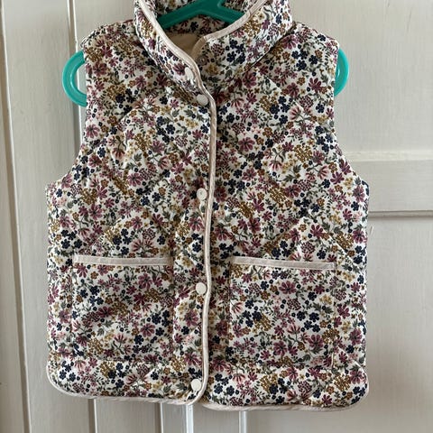 Kjempefin og varm vest, lite brukt. Har en liten flekk på innsiden (ved høyre ‘ermet’), som ikke er til sjenanse ved bruk. Polyesterfyll.