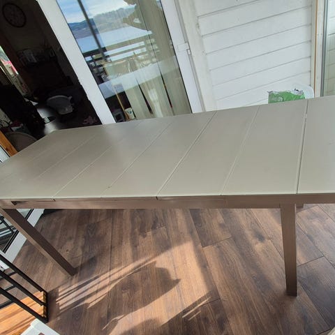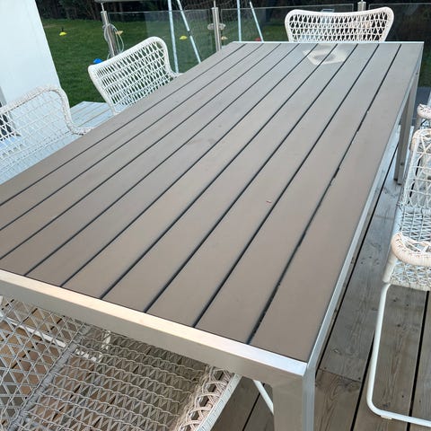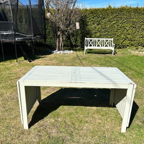 Stort, ovalt hagebord gis bort mot henting. Det er en liten sprekk i bordplaten, men bordet kan fint brukes en god stund til! Bordet hang under garasjetaket da vi overtok huset fra tidligere eier. Vi har ikke bruk for det, så vi vil gjerne gi det videre.