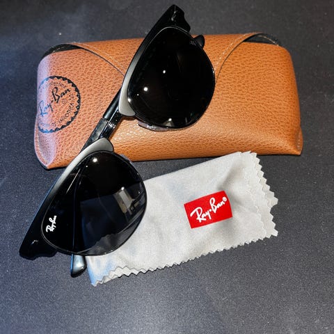 Pent brukte Sorte Rayban solbriller med etui.