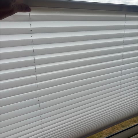 Solskjerming/plissegardin med bredde 1,4m selges. Den er kjøpt ny av oss fra kid i 2020 og brukt frem til nå. Den kan trekkes opp og ned, og fungerer som den skal. Har dessverre ved et tilfelle fått ketchup på seg som er vasket bort, men svak misfarging er fortsatt synlig i riktig lys. Er også ikke helt ren da den har hengt på et kjøkken i ca 4 år. Men fullt funksjonell!