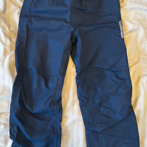 Vind og vannavstøtende foret skallbukse med strikk under foten, strikk i livet og noen refleksdetaljer. Str 146/152. Pent brukt. Fast pris. Ingen pruting.