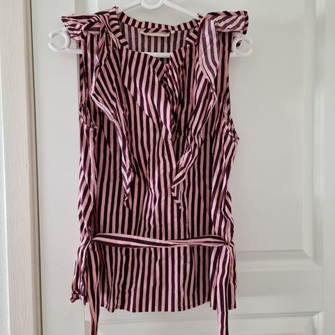 Fin topp med puffermer. Ny, bare prøvd på. står str 40 men str 38 er nok mer riktig. 100 kr