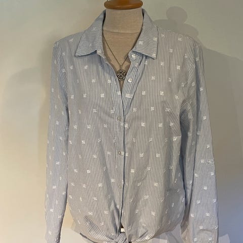 Selger Gerry Weber sommer bluse. Str. 40./ M. Brystomkrets ca 100 cm. 100 % bomull med små broderte blomster. Veldig fin og elegant, kan bli brukt til hver dag eller til alle slags selskap. Pris 190 kr. Kan sendes mot porto. Bruker VIPPS.