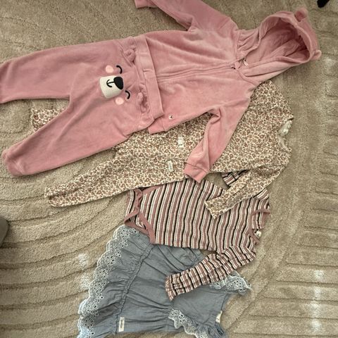 Selger pent brukte klær fra newbie, kan ikke se noen flekker. Den blå blomstrete bodyen er fra KappAhl. Veldig pen. Selges samlet. Se bilder