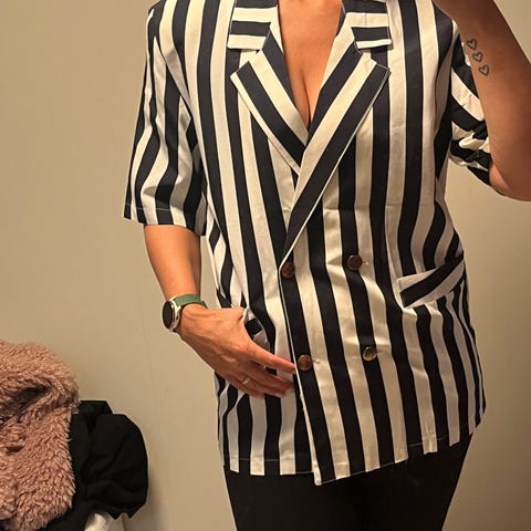 Vintage blazer i marineblå. Passer til M å. Midterste knapp mangler.