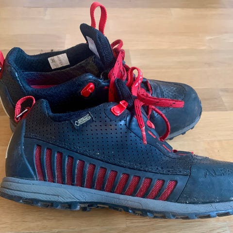 Gode tursko fra Alfa i str 32. Gore-tex. De er høye og stabile for foten. Vi har kjøpte disse skoene flere sesonger da barnet er liker de så godt. Mye bruk igjen. Kan sende.