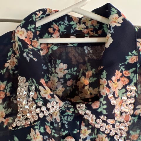 Mørkeblå med blomster.