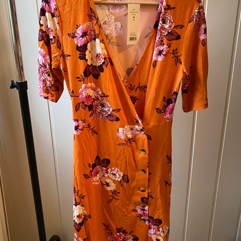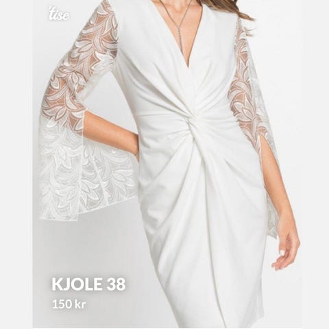 Selger en hvit omslagskjole fra Gina Tricot i str 38, med det er mer som medium-lagre. Ubrukt. Ble bare glemt og hengende i skapet. Kan fint brukes som mammakjole også.