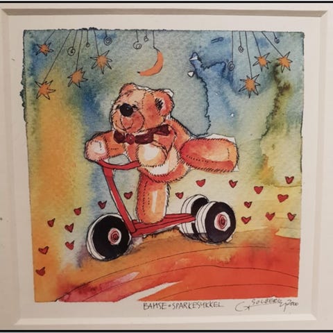 bilde ramme innrammet bamse solberg barn barnerom kunst