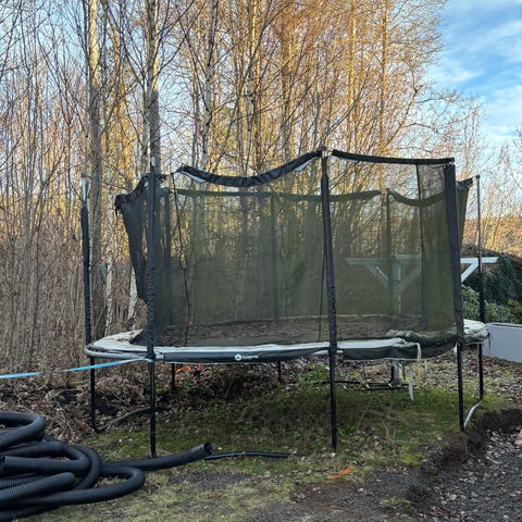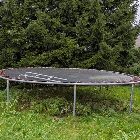 Rust på fjærer, og har ikke lenger nett, men fullt brukelig trampoline gis bort til førstemann som henter.