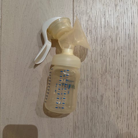 Selger Avent manuell brystpumpe. Brukt ca. 2 måneder og har stått uten bruk. Det er veldig lett å bruke. Kan brukes for å samle opp overskuddsmelk.
