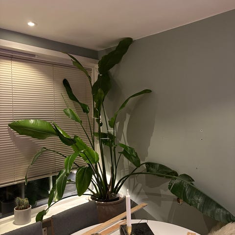 Stor Strelizia Nicolai plante på 2 meter, trenger nytt hjem og få mere sol lys , selges med tungt hjerte. Litt nedklippet, men nye skudd er på vei :-=)
