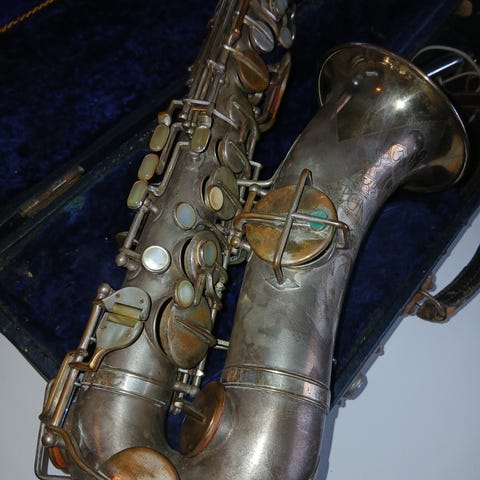 Vintage saksofon som kommer fra fabrikken over gaten fra Selmer SBA og Mark 6.