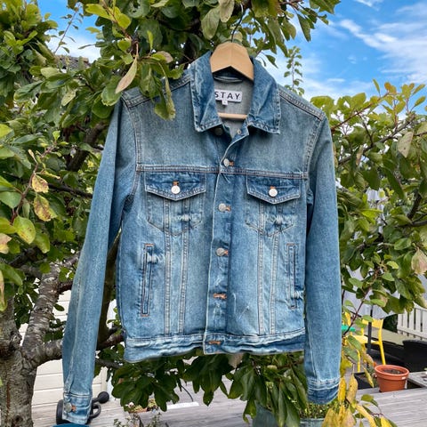 Lekker denim jakke dressjakke ny, ubrukt str 36, merke Jensen. Nydelige detaljer. Tynnere denimstoff, 100 % tencal. Selges for 149 kr pluss porto.