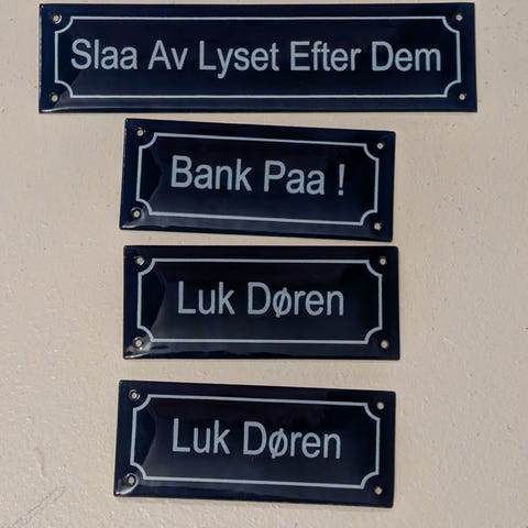 Rydder videre og Selger EMALJE SKILT fra Norges Statsbaner . Tenker at disse er fra 40 - 60 Tallet. . Skiltene er flate og produsert med Sjablong og Silketrykk Teknikk.. Finte skilt som er blanke så noe glans og skygge på bilder her.