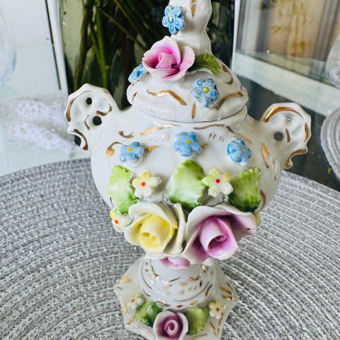 Nydelig sukker skål med lokk selges. Høyde 11,5 cm Bred 15cm. Ingen skader litt ulik fremme og bak nede med gullkant på ene siden. Kan også sendes i posten og postnord. 69kr. 10% avslag ved kjøp av flere av mine annonser. Samsender💐