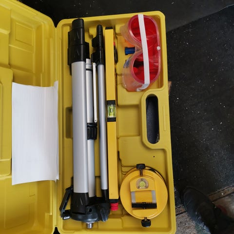 Laservater med stativ i koffert selges .