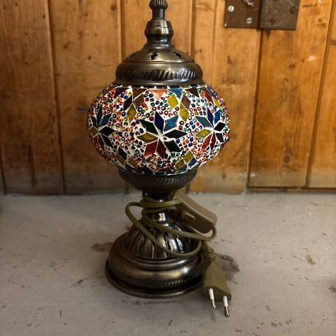 To søte lamper cirka 28 cm høy, kuppel ca. 6.5 cm. Begge lyspærene fungerer som normalt, på 0.5W. Selger de da jeg har kjøpt nye nattbordslamper ☺️ To nye ekstrapærer på 0.5W følger med 😊