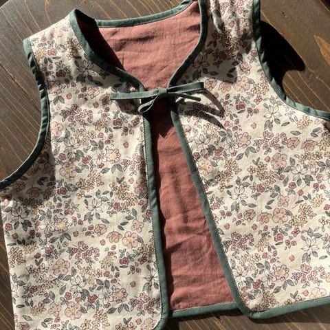 Håndsydd look – quiltet vest med blomster, str. 4 år 🌸