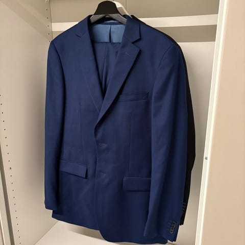 Flott grå ulldress dra Dressmann. Jakke er str.50R, bukse er str.33-34. Ny pris 2000kr.