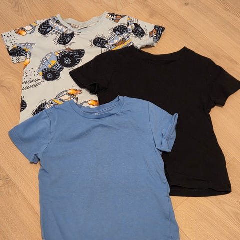 Tre stk tskjorter i 122/128 selges samlet for kr 100