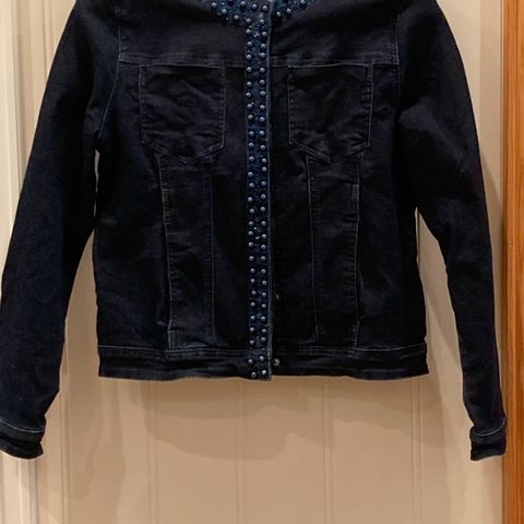Leopardmønstret jakke i twill i størrelse 36. Passer small og liten medium. Jakken har to store lommer og krage. Kort lengde og metallknapper foran.