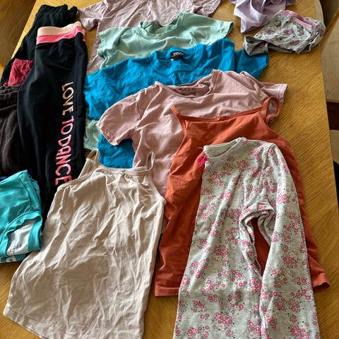 Klærne er i god stand og passer perfekt både til skole og fritid. Du finner blant annet shortser, kjoler, t-skjorter, gensere og mer.