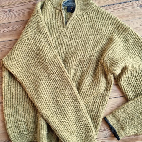 #ullgenser strikkagenser strikkegenser strikk strikka strikket knit hjemmestrikk strikket ull wool retro festival varm genser 90-talls 90s vintage håndarbeid hvit beige herregenser høy hals polo glidelås zip påskegenser påske