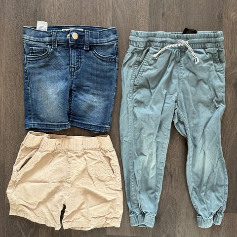 Selger ei shortspakke til gutt str. 98-104. Helt og i orden. Inneholder svart shorts fra Arena, dongerishorts fra H&M med strikk på innsiden, og olashorts fra LabIndustries. Den grønne t-skjorta fra Tufte i str. 98-104 sendes med gratis i pakka hvis ønskelig.