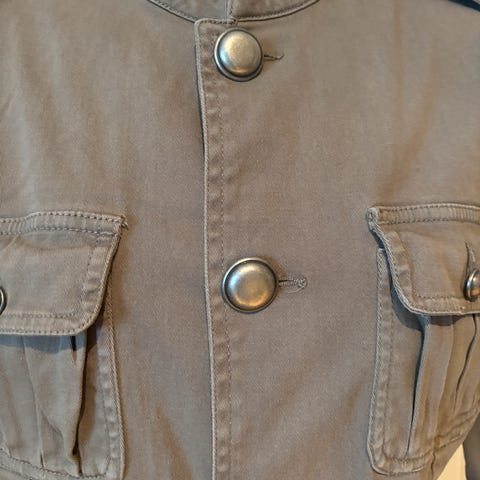 Jakke i god kvalitet med nydelig innerstoff. Litt bleket grønnfarge men ellers i fin stand.