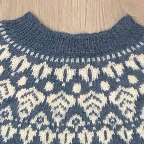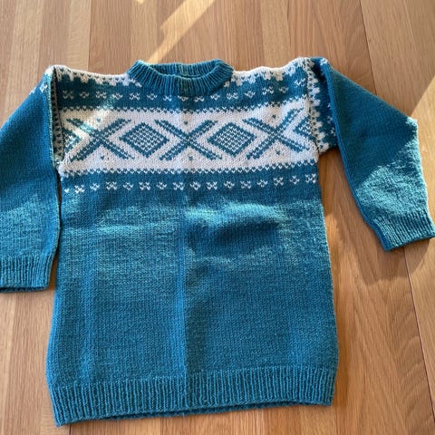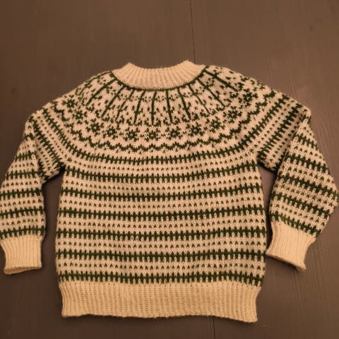 Genseren er strikket i Viking Aplaca Storm, et mykt og deilig ullgarn
