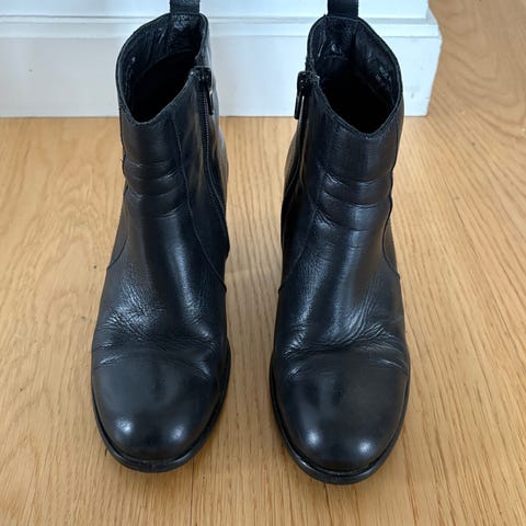 Sorte Marco Tozzi støvletter i ekte skinn størrelse 36. Litt hæl, middels høye. Glidelås.