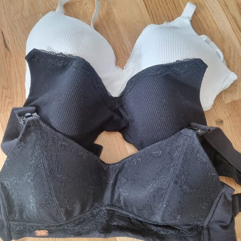 Kun vasket og prøvd på, men passet ikke optimalt. Utrolig pene ammebher😍