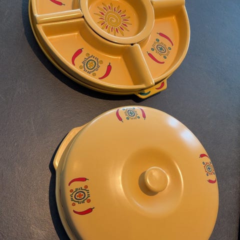 4 stk pikniktallerkner fra Sagaform, lite brukt. Passer fint både ute og inne, og til barn da de ikke knuser. Diam 20 cm.