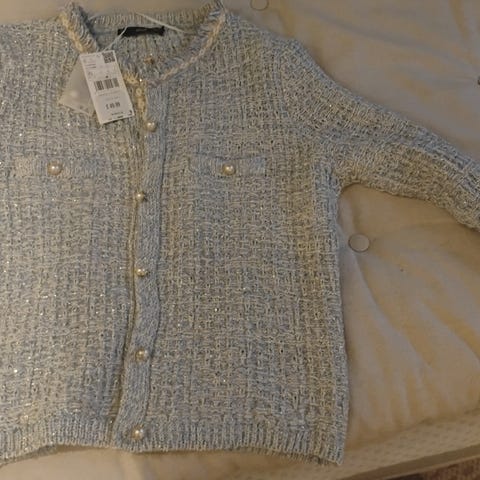 Nydelig tweed jakke fra mango. Brukt 1 gang. Størrelse XL, men kan fint brukes av L også.