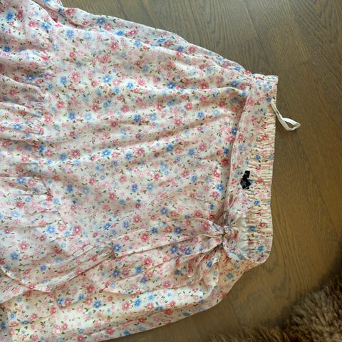 Dette sjarmerende gule skjørtet med et vakkert blomstermønster er et must for sommergarderoben! Med elastisk midje og flere lag gir det en luftig og feminin look. Perfekt til både hverdags og fest – style det med en enkel topp eller bluse og sandaler for et komplett antrekk!