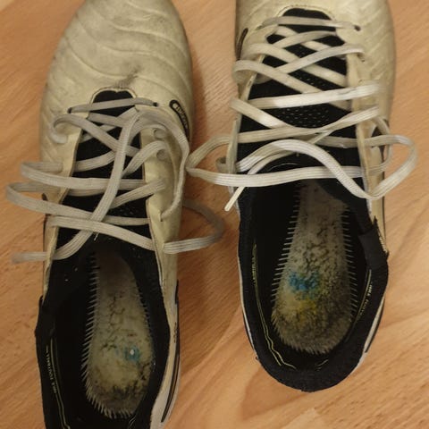 Fotballsko kunn brukt noen få ganger. Selger siden de har blitt for små.